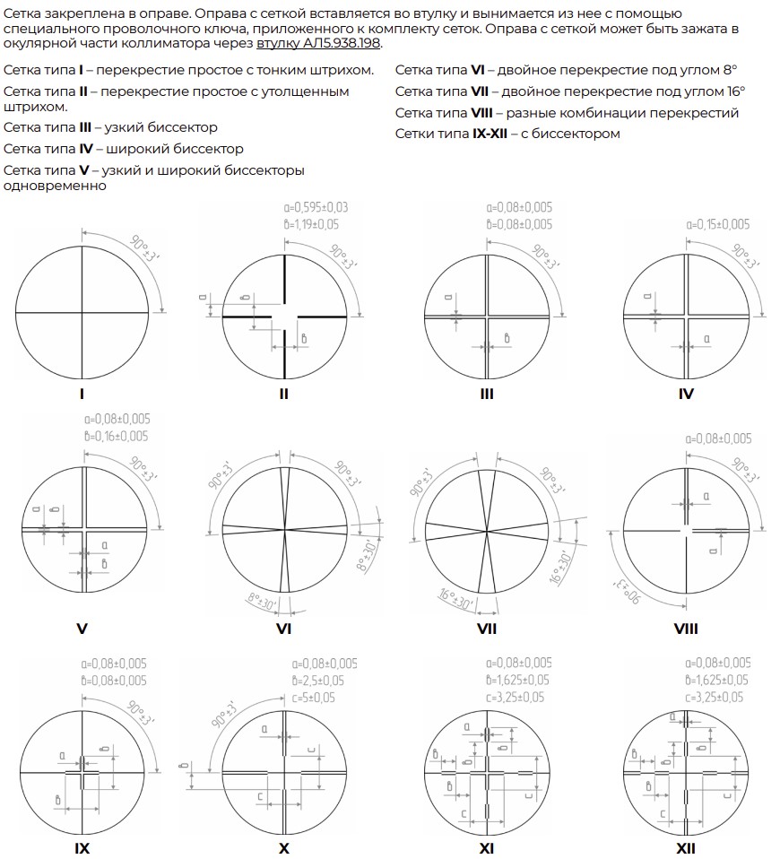 СЕТКА X – АЛ5.937.224-18 СЕТКА XI – АЛ5.937.224-20 СЕТКА XII – АЛ5.937.224-22